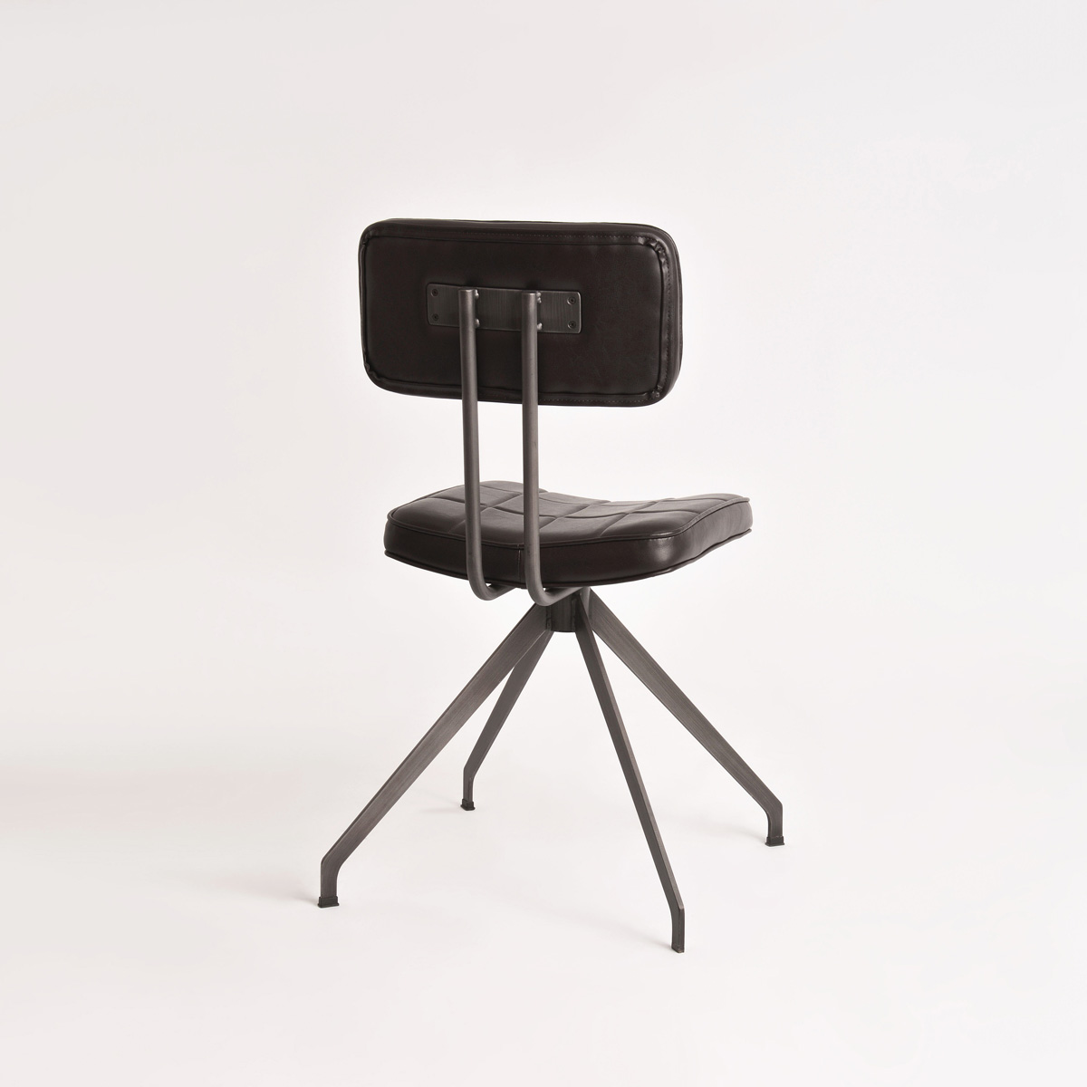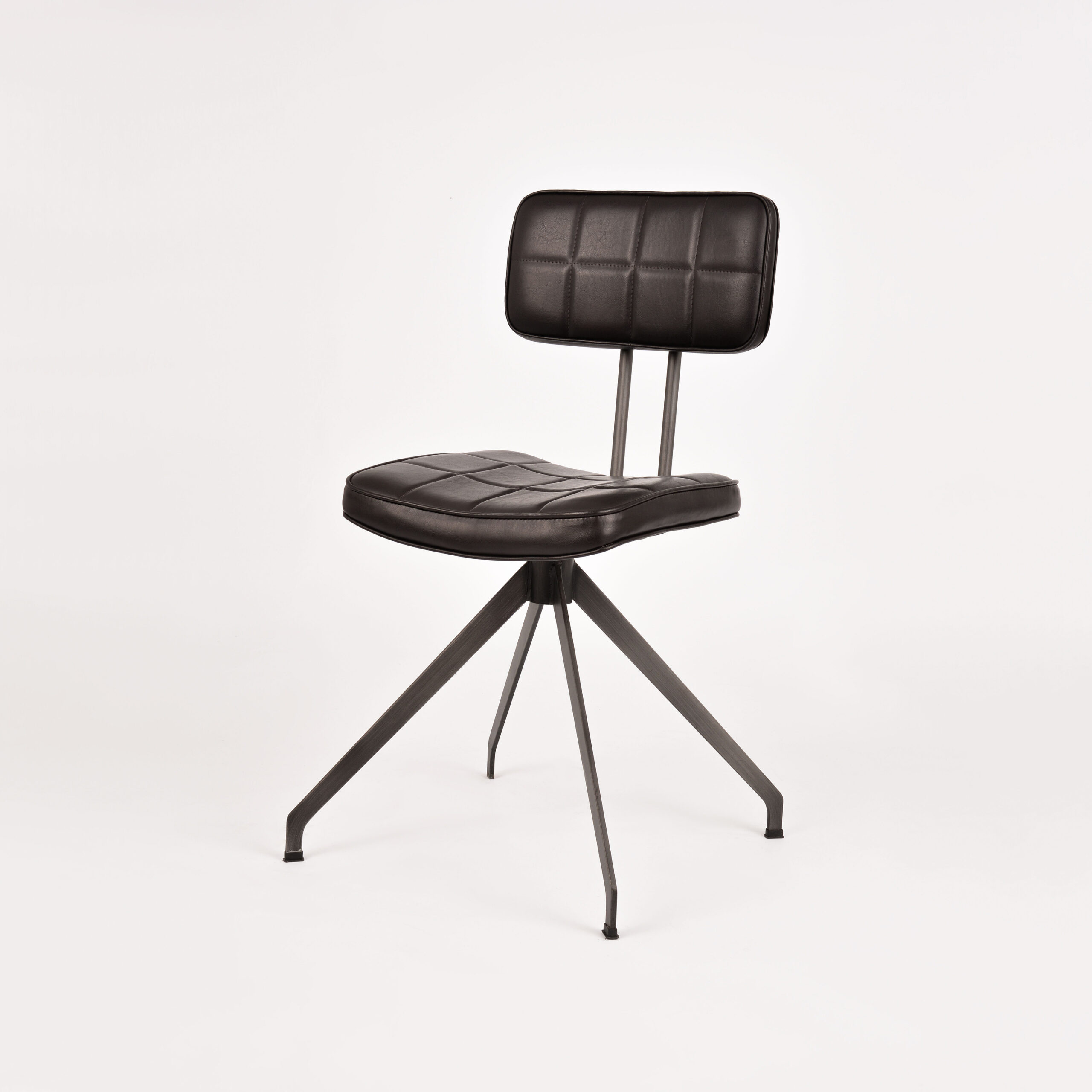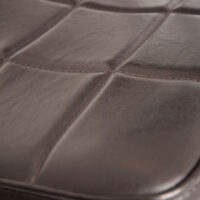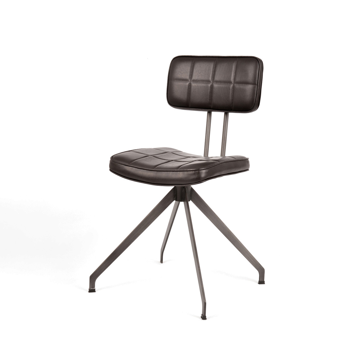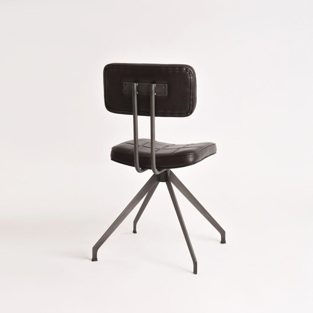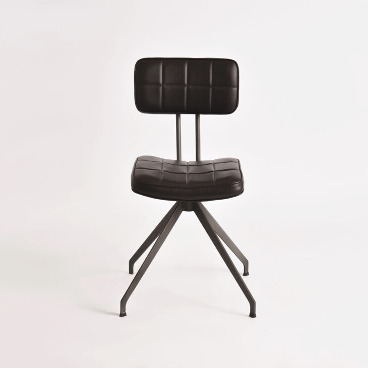 Stylowe krzesło Ashton to połączenie industrialnej elegancji i ponadczasowego komfortu. Wyróżnia się smukłą metalową konstrukcją o geometrycznej podstawie, która nadaje mu stabilności i charakteru. Tapicerowane siedzisko oraz oparcie pokryte zostały wysokiej jakości ekoskórą w ciemnobrązowym odcieniu, ozdobioną subtelnym pikowaniem w kratę. Całość dopełnia lekko zaokrąglona linia, która nadaje meblowi miękkości i zapewnia wygodę użytkowania.