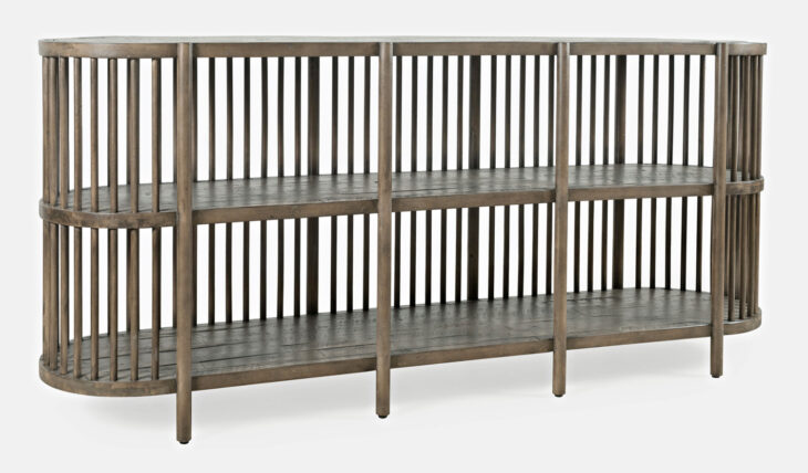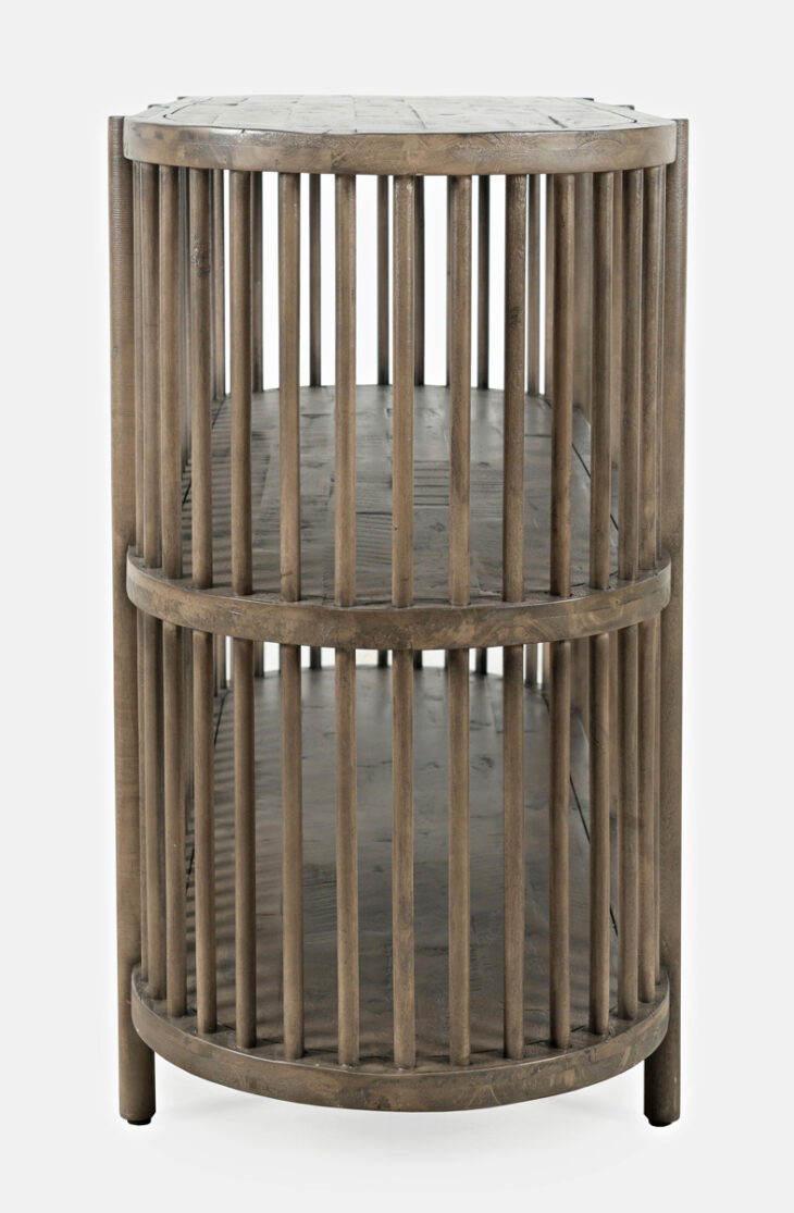 Ta owalna komoda w stylu boho to połączenie naturalnego piękna drewna akacji z unikalnym designem, który wnosi do wnętrza atmosferę lekkości i swobody. Front ozdobiony dekoracyjnymi, pionowymi szczebelkami tworzy efekt ażurowości, który nie tylko przyciąga wzrok, ale też subtelnie filtruje światło, dodając przestrzeni charakteru. To mebel, który łączy estetykę rzemiosła z funkcjonalnością.