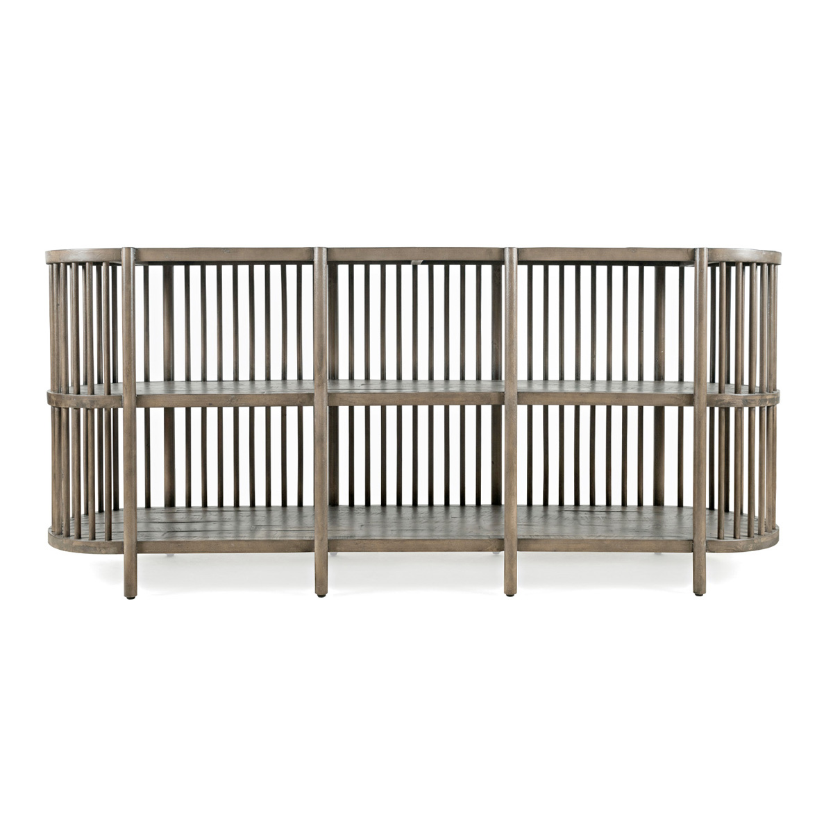 Delikatnie zaokrąglony blat oraz solidna, ale smukła forma sprawiają, że komoda nie przytłacza aranżacji, lecz ją harmonijnie uzupełnia. Dwie przestronne półki za łukowato zamkniętymi frontami pomieszczą zarówno przedmioty codziennego użytku, jak i dekoracje, a przemyślana konstrukcja ułatwia utrzymanie porządku.