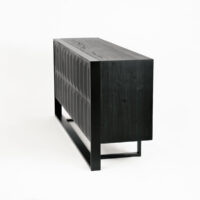 Trzy drzwi otwierane systemem push to open skrywają dwie przestronne półki, dzięki czemu komoda jest nie tylko designerska, ale i praktyczna. Doskonale sprawdzi się w nowoczesnych, loftowych i minimalistycznych aranżacjach.