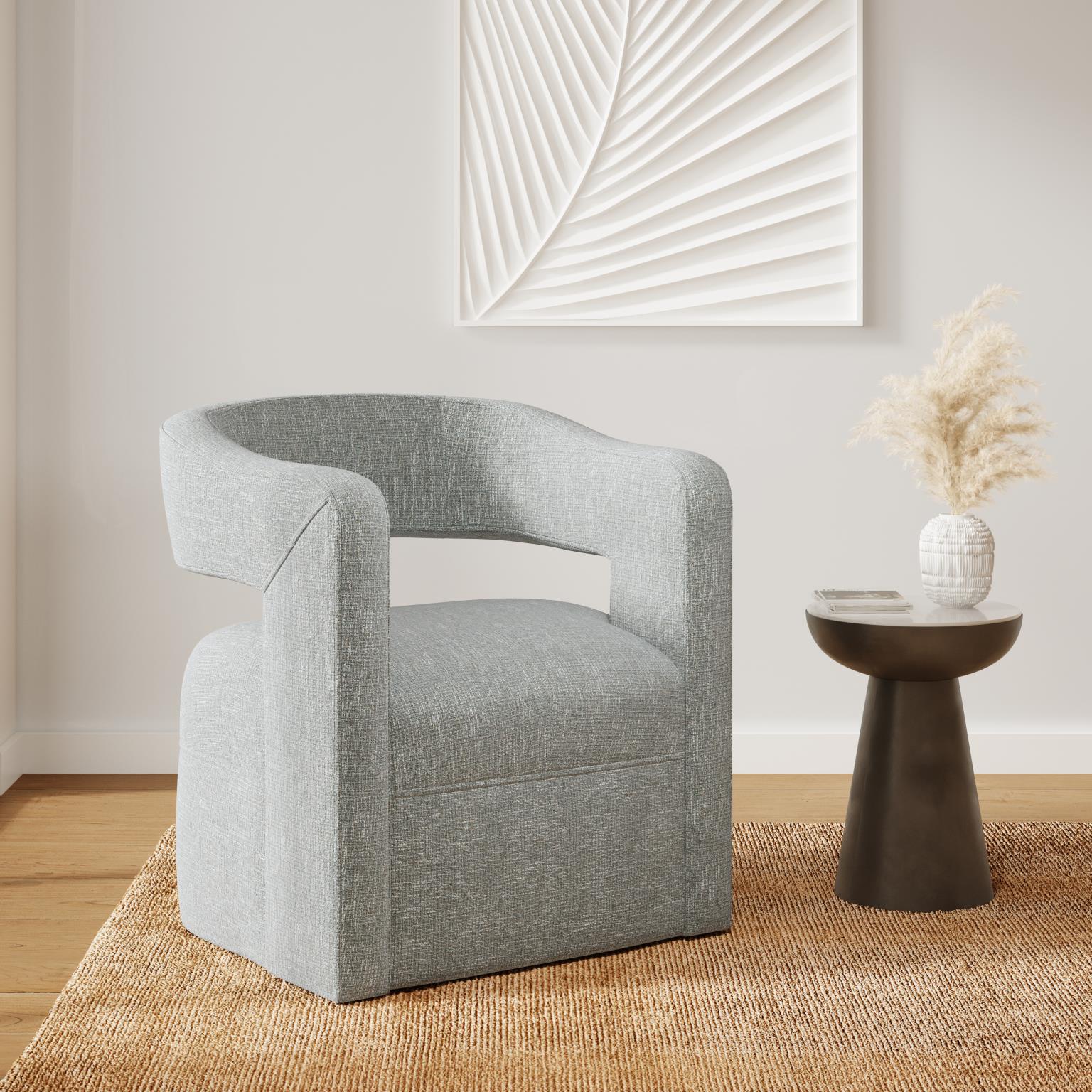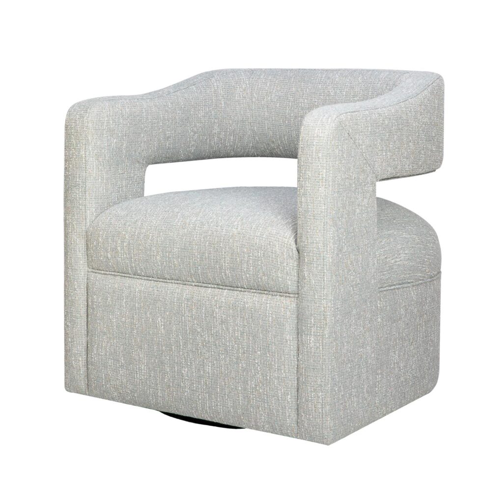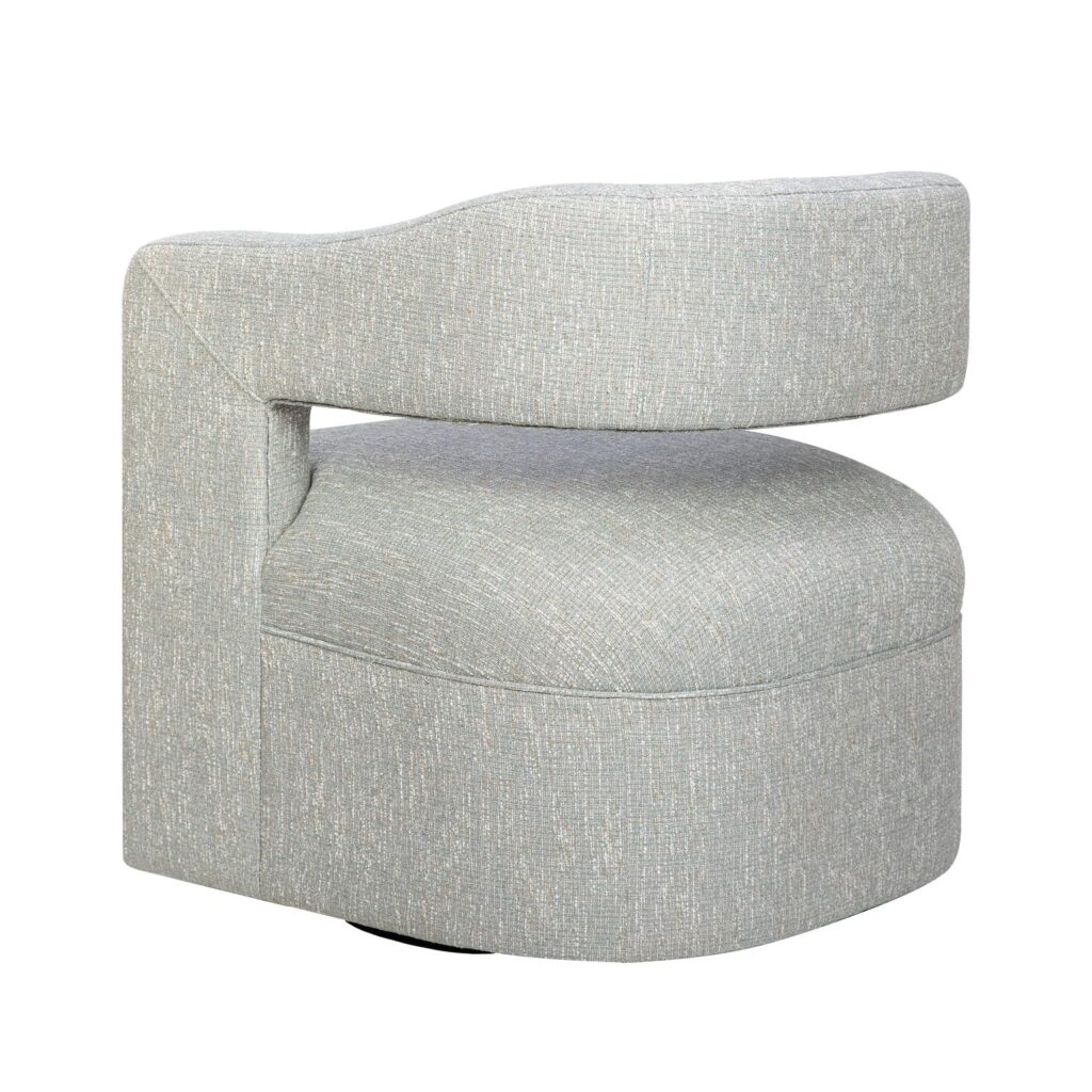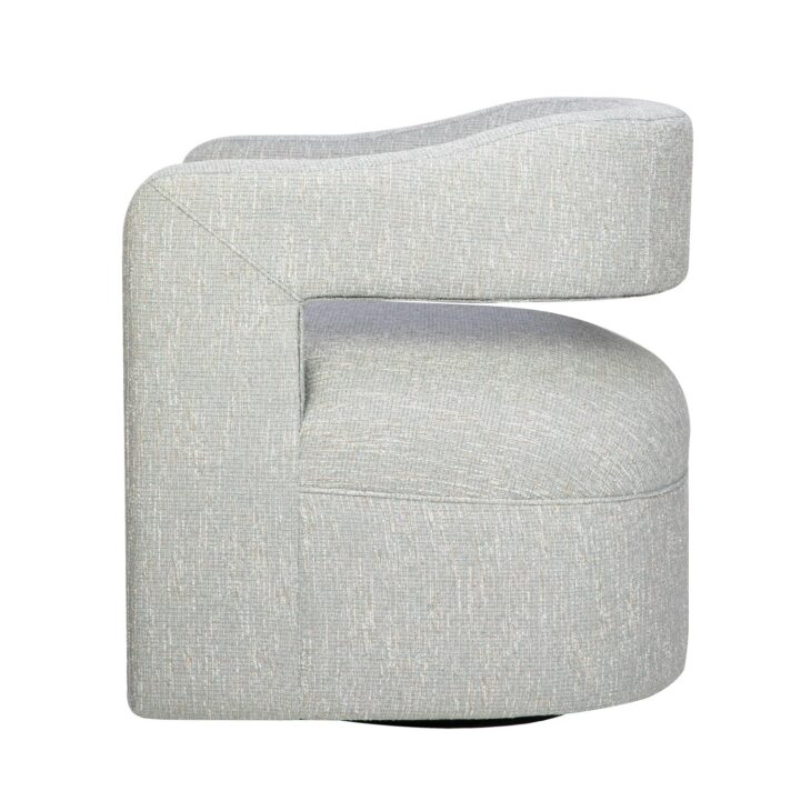 Stylowy fotel obrotowy w kolorze jasnoszarym to nowoczesny mebel, który łączy minimalistyczny design z funkcjonalnością. Jego miękka, zaokrąglona sylwetka doskonale wpisuje się w aktualne trendy wnętrzarskie, oferując jednocześnie wyjątkowy komfort dzięki wygodnej poduszce siedziskowej i sprężynom falistym.