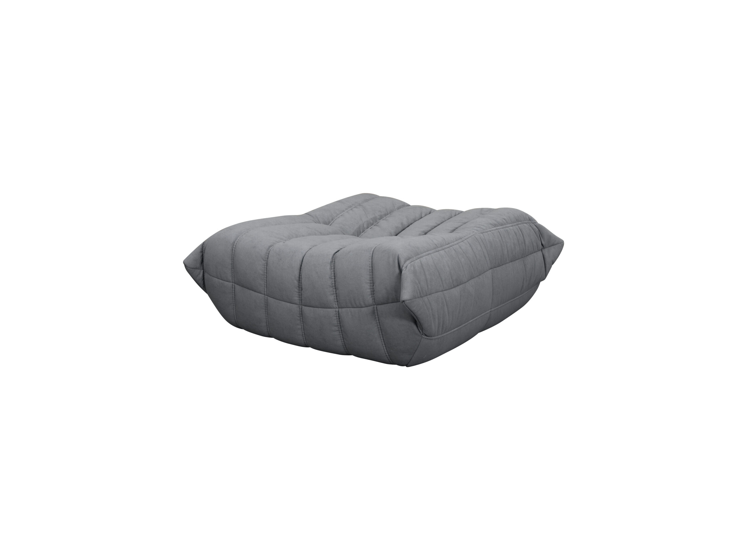 Podnóżek Nua w odcieniu stalowej szarości to stylowy i funkcjonalny dodatek do każdego wnętrza. Prosta, niska forma z charakterystycznym poziomym przeszyciem i centralną linią pikowania nadaje mu wyrazisty, ale stonowany wygląd.