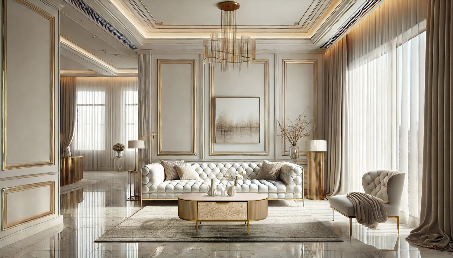 Kolor – Szampańskie złoto, złote nogi i akcenty, jasnokremowy front, biały marmurowy blat