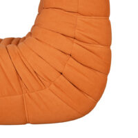 Tapicerowany tkaniną aksamitną z wyraźną strukturą splotu w głębokim odcieniu palonej pomarańczy, zestaw przyciąga wzrok i ociepla przestrzeń. Wypełnienie z miękkiej gąbki zapewnia wygodę, a gotowe do użytku elementy nie wymagają montażu.